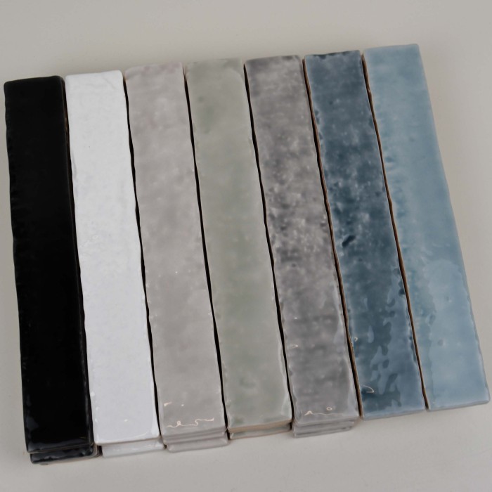 Nine unique surfaces per color, each with an intentional interplay of irregular texture and gloss, transforming walls into dynamic compositions of light, depth, and contrast. For crackle tiles a sealing product is advised.